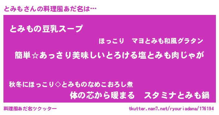 | ヘコむあだ名 | 『とみも(遠い目)』『とみぷりん』 |