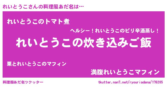| 男性向けラノベタイトル風あだ名 | 『うちのれいとうこが世界を掌握している!』 |
