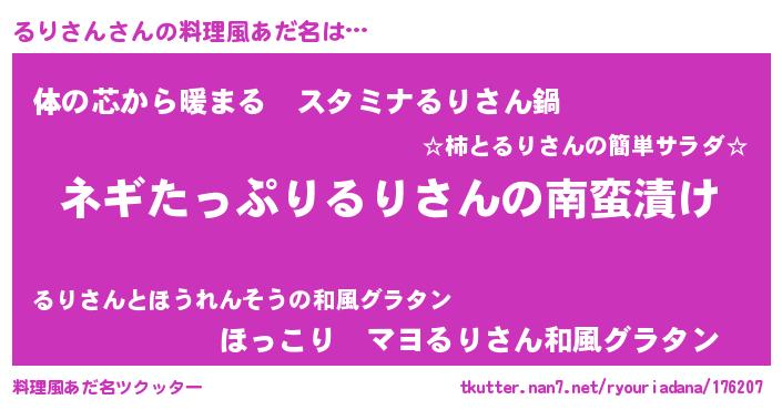 | ヘコむあだ名 | 『るりっふぃ~』『なまこ酢』 |