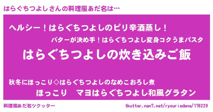 | 意味不明あだ名 | 『自称はらぐちつよし』 |