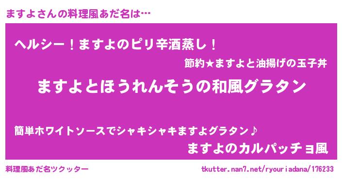 | 女子向けラノベタイトル風あだ名 | 『ますよの玉の輿計画!』『闇のますよ』 |
