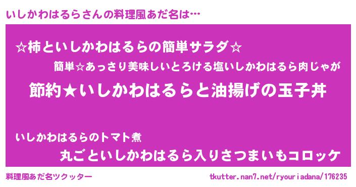 | 胡散臭い通販商品みたいなあだ名 | 『モテモテ間違いなし霊験あらたかなお札…その名も「いしかわはるら」』 |