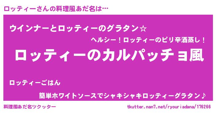 | 意味不明あだ名 | 『住所不定無職ロッティー(8歳)』 |