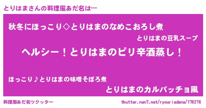 | 女子向けラノベタイトル風あだ名 | 『闇のとりはま』『とりはまは平凡を望む』 |