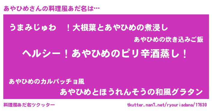 | 男性向けラノベタイトル風あだ名 | 『Re:あやひめから始める異世界生活』 |