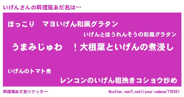 | ヘコむあだ名 | 『酢こんぶ』『いげもー』『いげお』 |