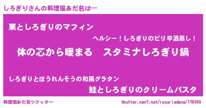 | ヒーロー風カッコイイあだ名 | 『ウルトラしろぎりマン』『仮面シロダー』 |