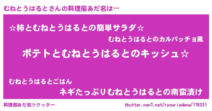 むねとうはるとさんの料理風あだ名をツクッター!