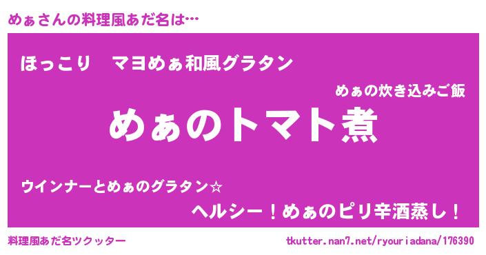 | 女子向けラノベタイトル風あだ名 | 『めぁ夫妻のなれそめ』『めぁ伯爵の花嫁』 |