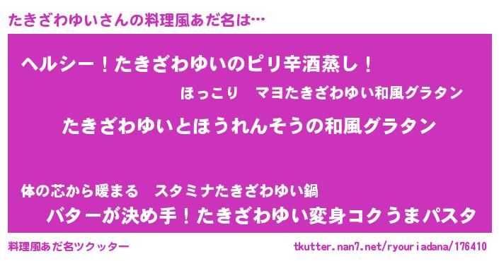 | 恥ずかしいあだ名 | 『タキザワユイデラックス』『たきっちょ』 |