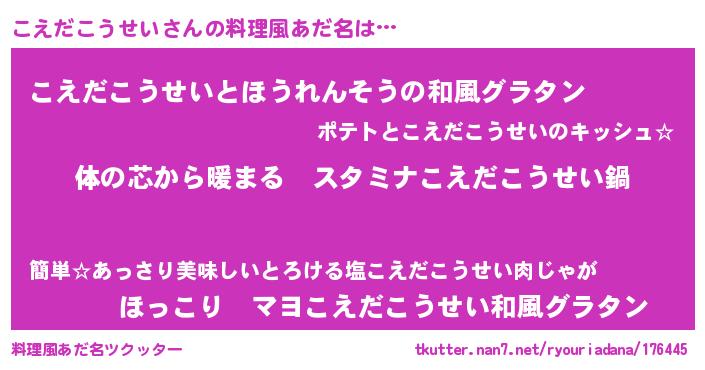 | ファンタジー風あだ名 | 『エターナルコエダコウセイー』 |