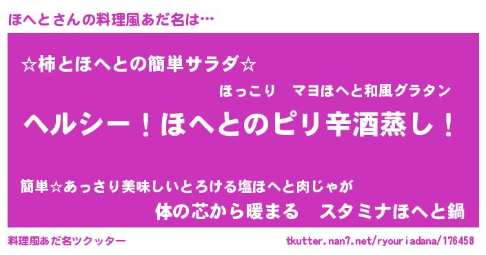 | 男性向けラノベタイトル風あだ名 | 『Re:ほへとから始める異世界生活』 |
