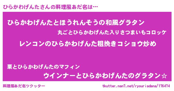 ひらかわげんたさんの料理風あだ名をツクッター!