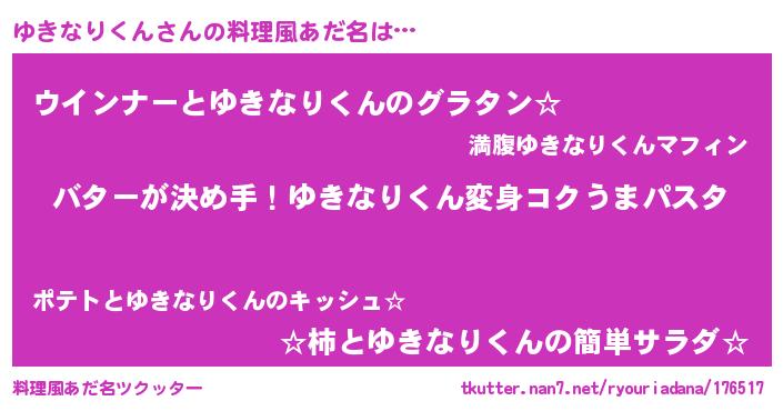 | 男性向けラノベタイトル風あだ名 | 『ノーゲーム・ノーユキナリクン』 |