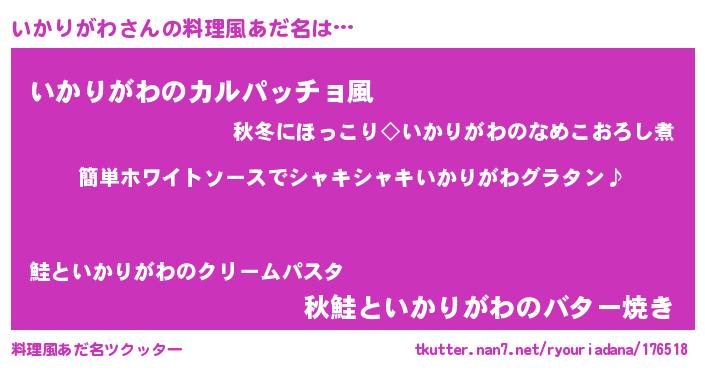 | 女子向けラノベタイトル風あだ名 | 『いかりがわ様がみてる』 |