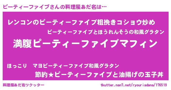 | 意味不明あだ名 | 『永久保存ピーティーファイブ』 |