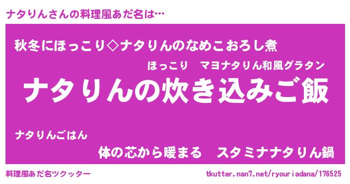 | ヒーロー風カッコイイあだ名 | 『ウルトラナタりんマン』『仮面ナタダー』 |