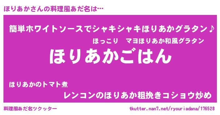 | 意味不明あだ名 | 『しいたけ科ほりあか属』『自称ほりあか』 |