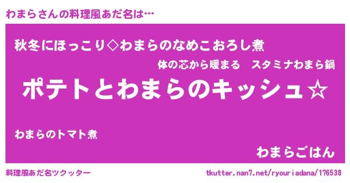 | ヒーロー風カッコイイあだ名 | 『幻影騎士ワマ』『ウルトラわまらマン』 |