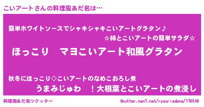 | 胡散臭い通販商品みたいなあだ名 | 『あなたにだけ特別に提供する世界で10本だけ現存している希少なブランデー…その名も「こいアート」』 |