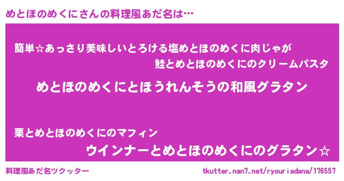 | 胡散臭い通販商品みたいなあだ名 | 『前代未聞の健康食品…その名も「めとほのめくに」』 |