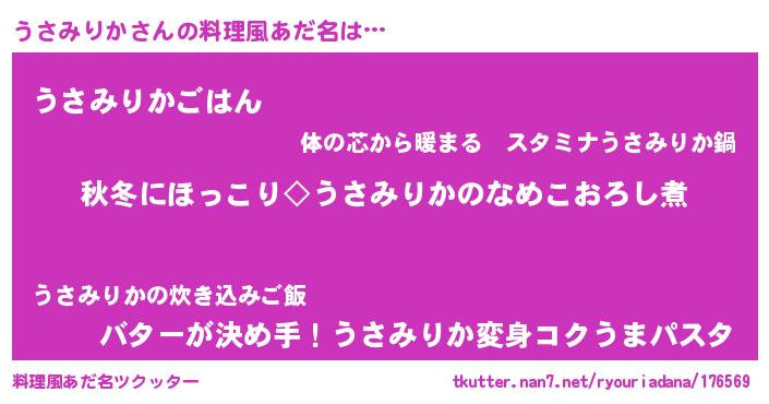| ヘコむあだ名 | 『酢こんぶ』『うさみりか(笑)』 |