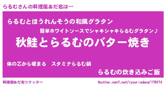 | 胡散臭い通販商品みたいなあだ名 | 『来世でも幸せになれる水素水…その名も「らるむ」』 |