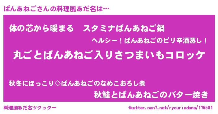 | 意味不明あだ名 | 『住所不定無職ばんあねご(12歳)』 |