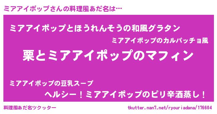 | 男性向けラノベタイトル風あだ名 | 『はたらくミアアイポップさま!』 |