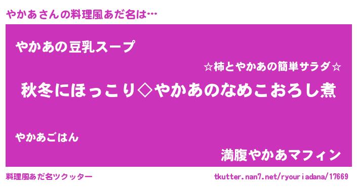 | ヘコむあだ名 | 『やかっぺ』『やかあ(爆)』 |