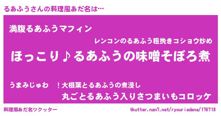 | 意味不明あだ名 | 『ペロリンるあふう』『永久保存るあふう』 |