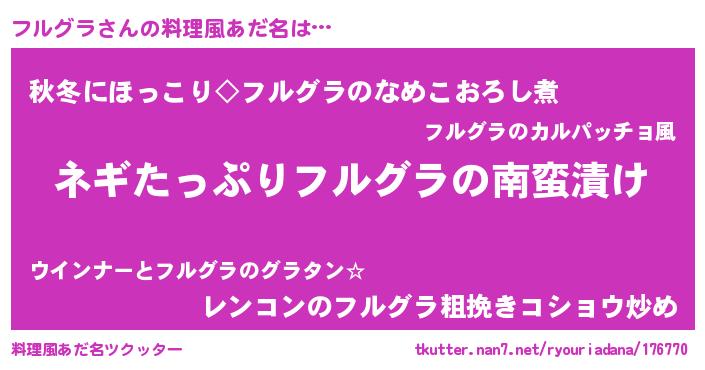 | ヒーロー風カッコイイあだ名 | 『スーパーフルグラ』『究極戦士フルグラ』 |