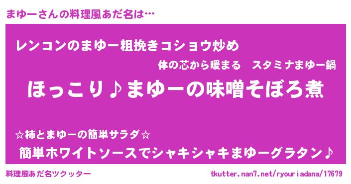| ファンタジー風あだ名 | 『マユフェル』『ゼマユトゥ』 |