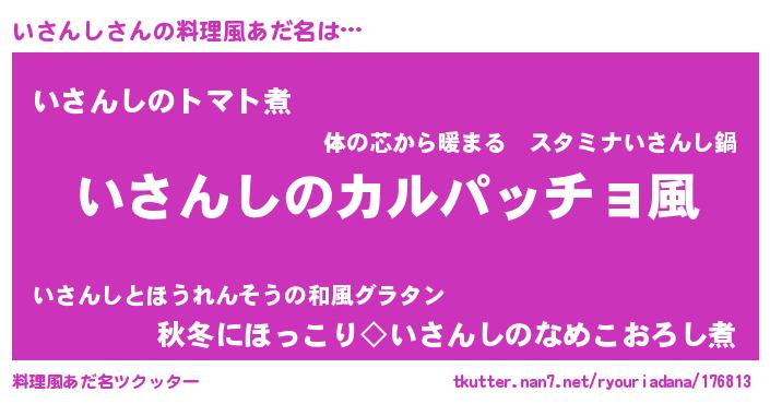 | ヒーロー風カッコイイあだ名 | 『仮面イサダー』『正義の使者いさんし』 |