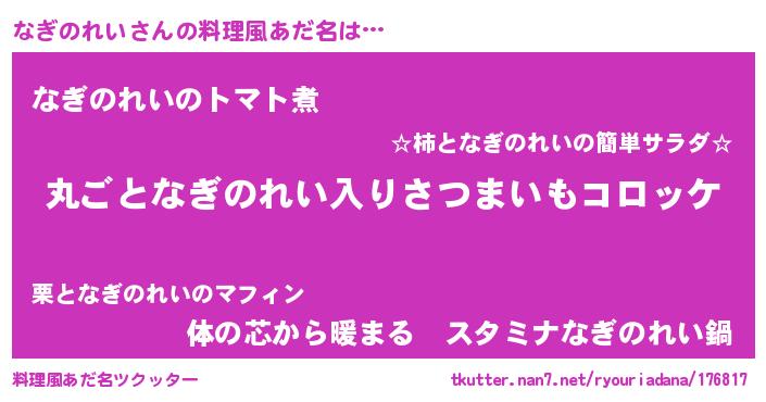 | 男性向けラノベタイトル風あだ名 | 『この素晴らしい世界になぎのれいを!』 |