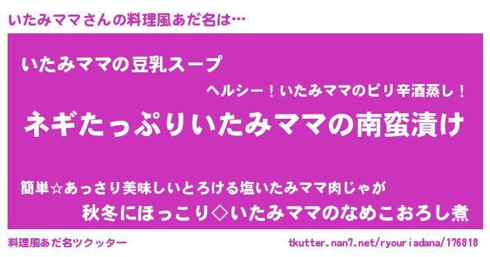 | ヒーロー風カッコイイあだ名 | 『スーパーイタミママ』『暗黒騎士イタ』 |