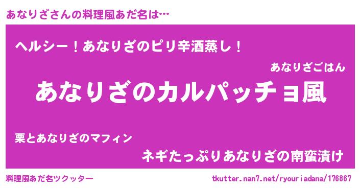 | 意味不明あだ名 | 『住所不定無職あなりざ(93歳)』 |