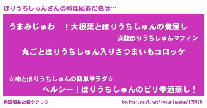 | 意味不明あだ名 | 『住所不定無職ほりうちしゅん(68歳)』 |
