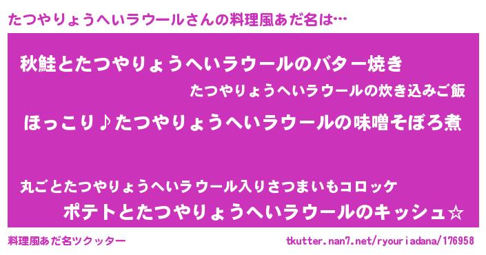 | 女子向けラノベタイトル風あだ名 | 『(仮)たつやりょうへいラウールのやんごとなき事情』 |