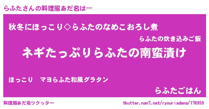 | 男性向けラノベタイトル風あだ名 | 『ラフタアートオンライン』 |