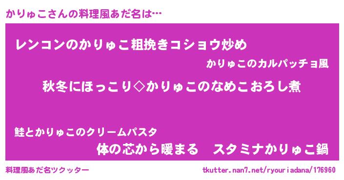 | 男性向けラノベタイトル風あだ名 | 『かりゅこに滅ぼされるだけの簡単なお仕事です』 |