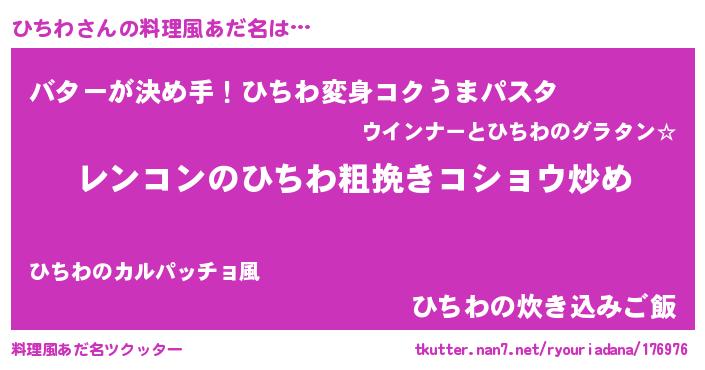 | ヒーロー風カッコイイあだ名 | 『超時空戦士ヒチワ』『慈愛の使者ひちわ』 |