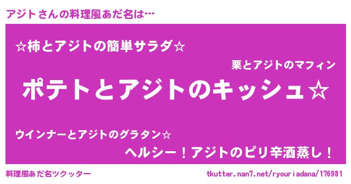 | ピコ太郎風あだ名 | 『アジ太郎』『ピア三郎』『アア太郎』 |