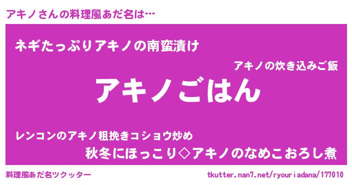 | ピコ太郎風あだ名 | 『アコ太郎』『アキ次郎』『アア太郎』 |
