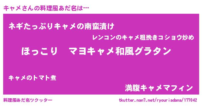 | 男性向けラノベタイトル風あだ名 | 『この素晴らしい世界にキャメを!』 |