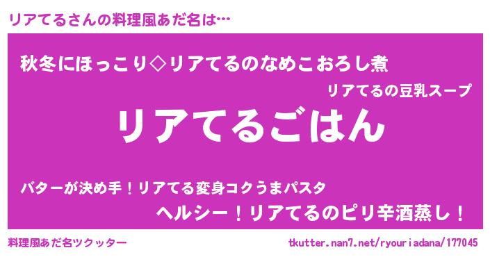| 恥ずかしいあだ名 | 『リアテルデラックス』『リアリンリン』 |