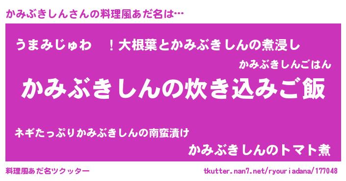 | 男性向けラノベタイトル風あだ名 | 『うちのかみぶきしんが世界を掌握している!』 |