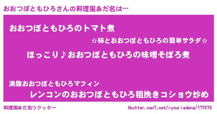 | ヘコむあだ名 | 『おおっふぃ~』『おおつぼともひろ(笑)』 |