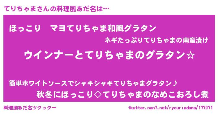 | ファンタジー風あだ名 | 『エターナルテリチャマー』『テリフェル』 |