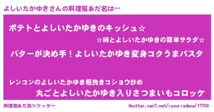 | 男性向けラノベタイトル風あだ名 | 『ノーゲーム・ノーヨシイタカユキ』 |